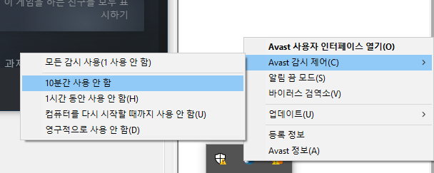 혹시나 하는 마음에 Avast 백신 감시를 중단하고 실행했더니 성공