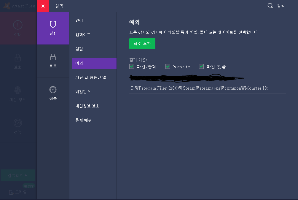 이렇게 매번 몬헌할 때마다 감시 제어를 중단할 수는 없으니 예외로 등록