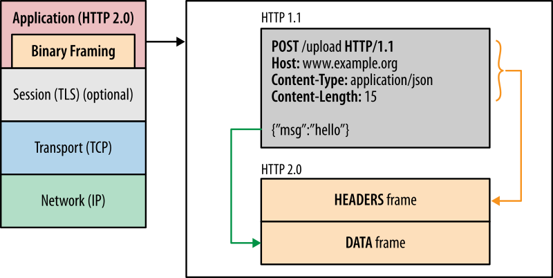 HTTP/2 는 HTTP/1.1 과 다르게 메세지를 텍스트 포맷이 아닌 바이너리 포맷으로 인코딩합니다. 데이터의 포맷이 변경되었기 때문에 당연히 클라이언트와 서버가 포맷을 변경하는 코드를 구현해야 합니다. 하지만 클라이언트는 브라우저에서 이미 처리하기 때문에 신경쓰지 않아도 되고, 서버는 프레임워크가 이미 구현했기 때문에 신경쓰지 않아도 됩니다. 즉 내부적으로 포맷을 변경하기 때문에 개발자는 신경 쓰지 않아도 됩니다. HTTP 프로토콜을 사용할 TCP 소켓을 개발한다면 구현해야 합니다.